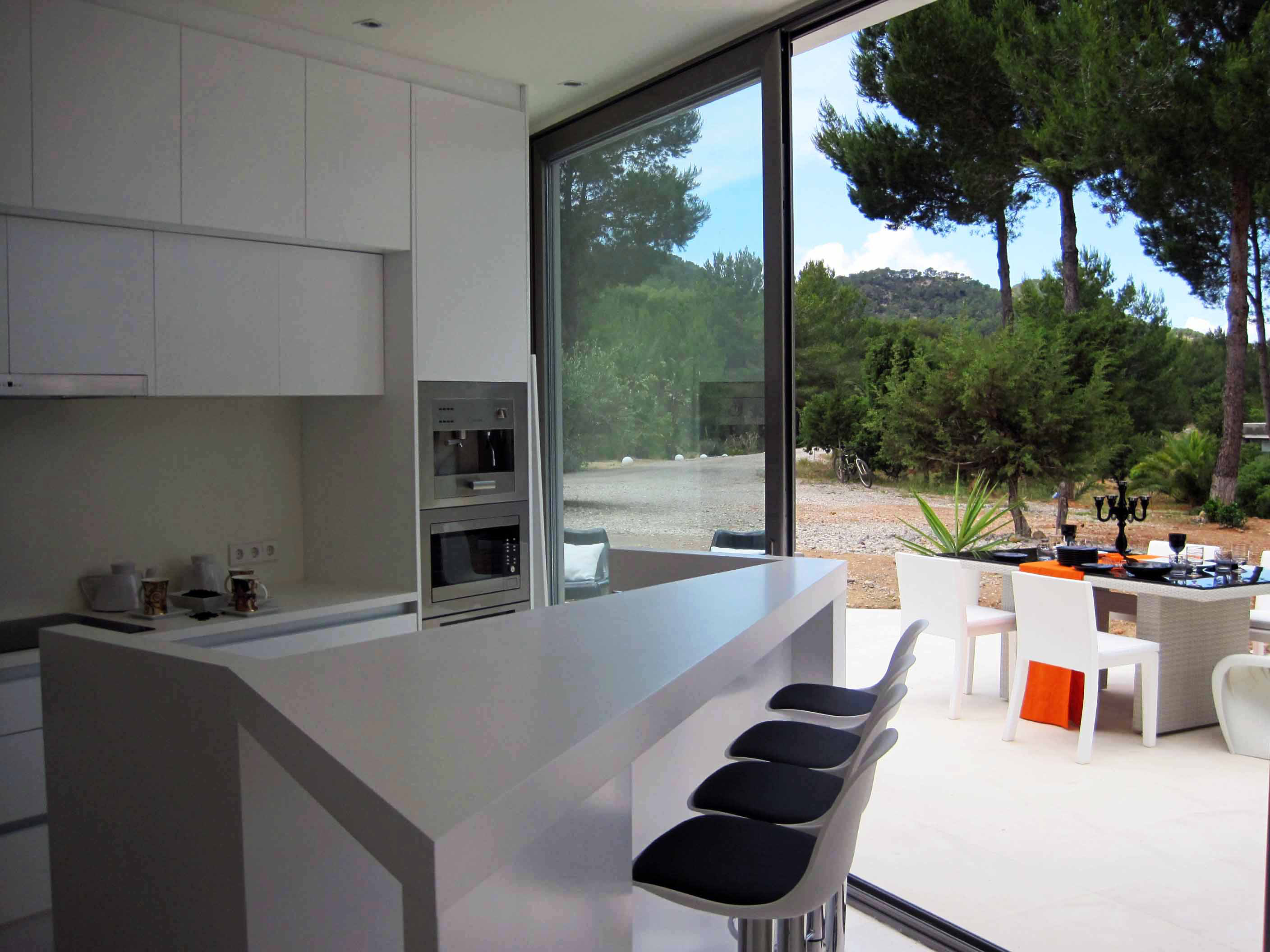 In the middle of the green hills of San Antonio we find this amazing villa with breathtaking views of the sea, capable of seating 24 people. The structure is divided into three houses. The main house consists of a spacious living room with TV and dining table, a full kitchen, four bedrooms and four bathrooms. The second house instead consists of a living room with full kitchen, four bedrooms and three bathrooms. Finally, the last house consists of a living room with kitchen, four bedrooms and three bathrooms. The building, completely fenced, is equipped with air conditioning, wi-fi, safe, sauna and swimming pool with sun terrace. San Antonio is one of Ibiza town with a large number of shops and restaurants and offers beaches are characterized by soft white sand and clear water.