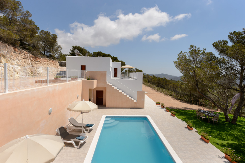 Beautiful villa in Ibiza, newly built, with sea views, located on a residential complex near Es Cubelles, small island town, with garden, swimming pool and sun terrace. In the villa there is a spacious living room with TV and dining table, a full kitchen ceramic glass, three bedrooms and three bathrooms. The villa is equipped with wifi internet access and air conditioning. The nearest beach is Cala Vadella located in a picturesque bay with fine white sand and crystal clear water and offers the opportunity to enjoy water sports.