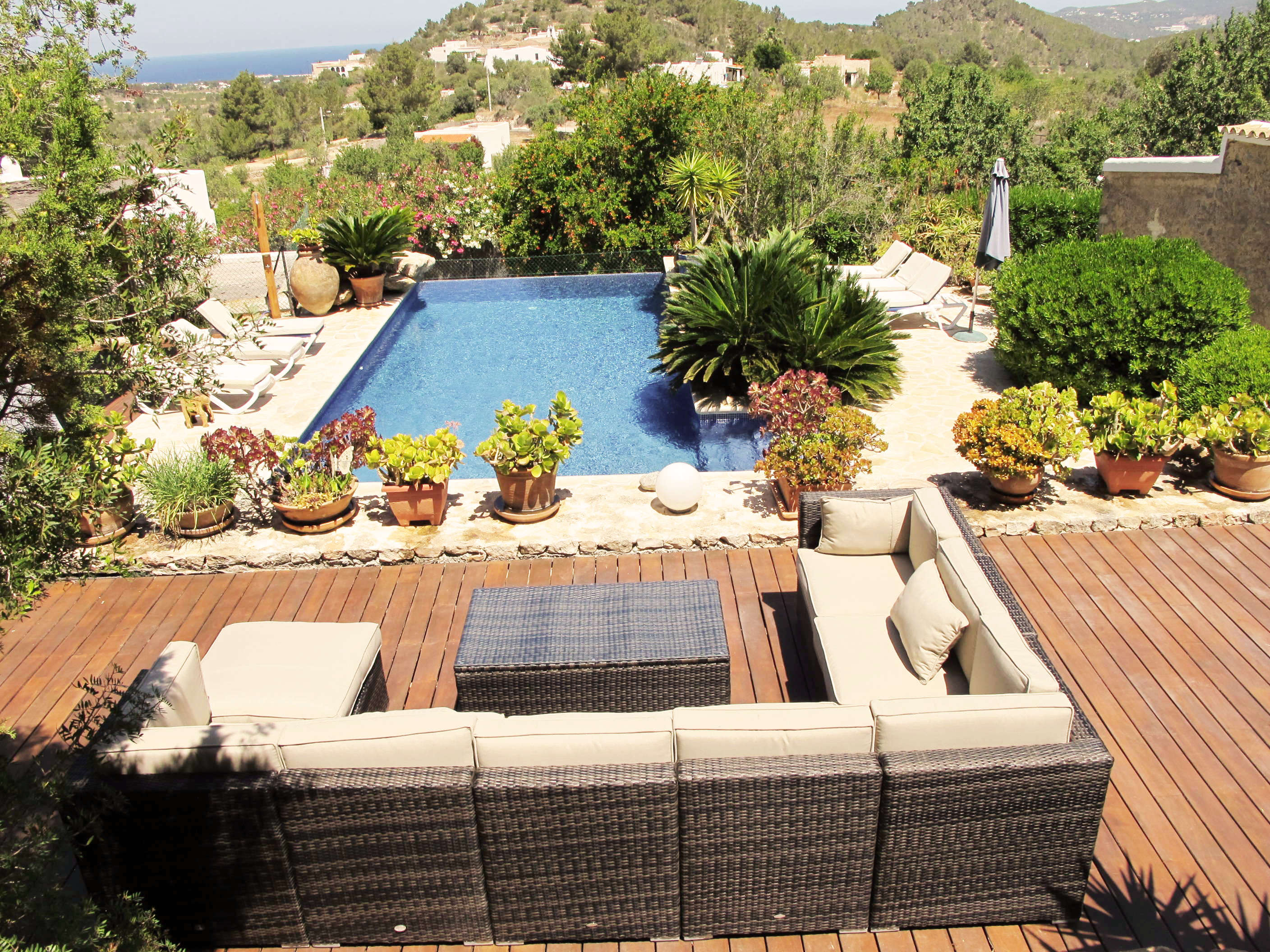 Numero di registro: ETV-1583-E. Questa lussuosa villa è situata nelle vicinanze di San Antonio de Portmany, una piccola cittadina del sud di Ibiza, vicino alle meravigliose spiagge famose grazie alle loro idilliache acque cristalline e alla loro sabbia finissima. L’alloggio è sviluppato in due piani ed è composto da un ampio soggiorno con tv e tavolo da pranzo, una cucina completa, cinque camere da letto e cinque bagni, permettendo di ospitare fino a dieci persone. L’edificio è completamente recintato ed è munito di aria condizionata e connessione internet wi-fi. Al suo esterno troviamo un bellissimo giardino con barbecue e tavolo da pranzo, una bellissima piscina con zona solarium dove è possibile rilassarsi e ammirare un romantico tramonto.