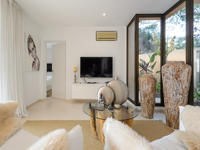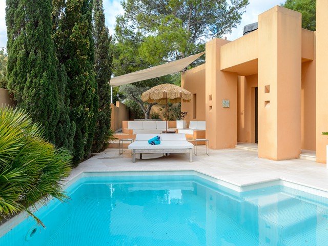 Numero di registro: ET-E0752. Questa bellissima villa è situata in una zona panoramica vicino alle spiagge di Cala Vadella e Cala Moli. La casa conta 200 mq e si sviluppa su due piani. Al suo interno troviamo un ampio e luminoso soggiorno con tv e divano, una cucina completa, tre camere da letto e quattro bagni. L’abitazione offre i servizi di aria condizionata e connessione internet wi-fi. L’alloggio è circondato da un vasto spazio aperto con barbecue e tavolo da pranzo, zone relax, piscina e idromassaggio con una fantastica vista. Nelle sue vicinanze troviamo una vasta gamma di locali, bar e ristoranti dove è possibile gustare un’ottima grigliata di pesce fresco sotto le stelle di Ibiza.